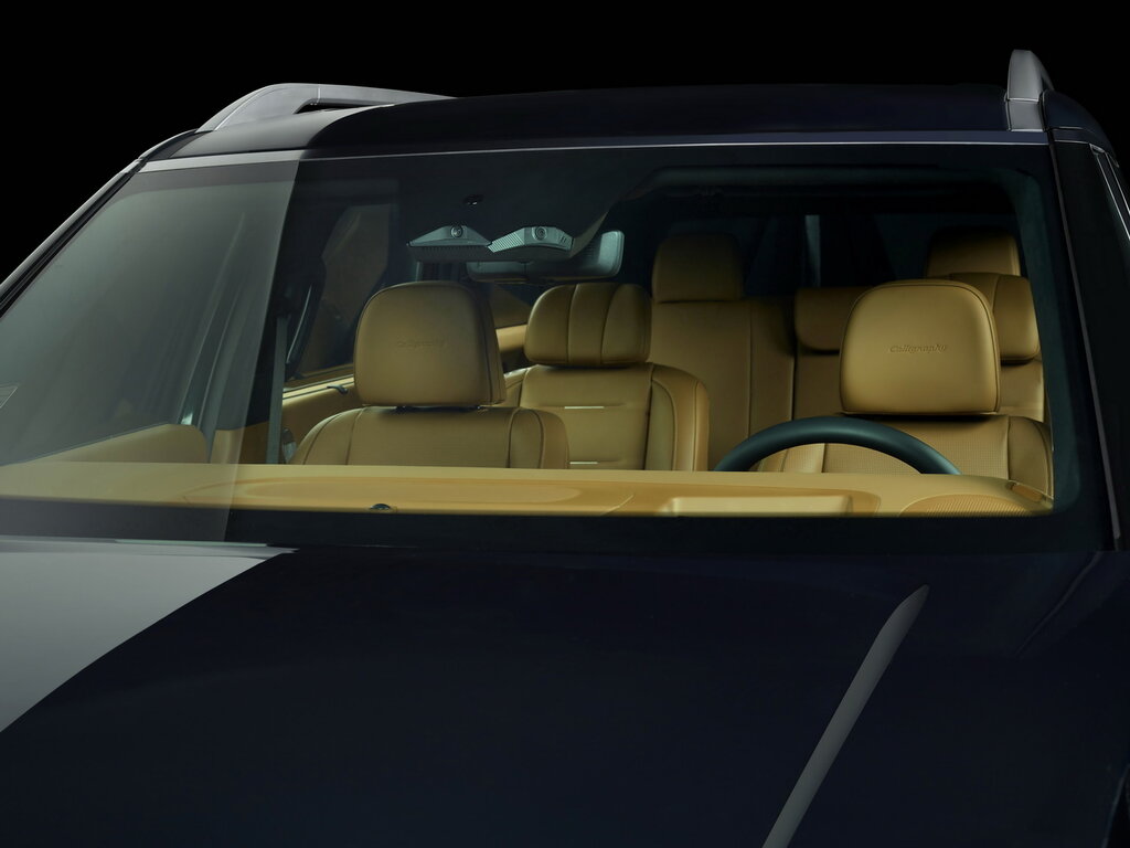 Интерьер черного/темно-серого/серо-синего/коричневого цвета, отделка потолка, стоек, козырьков замшей